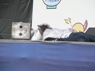 ボールで怪獣倒そうとしたけど、全然舞台まで届かなくて、