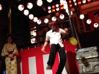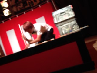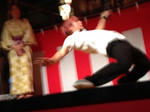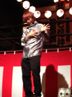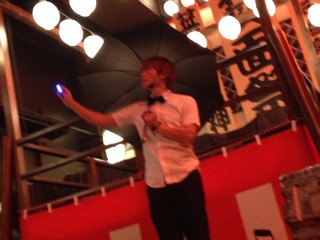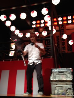 もう一度、舞台に上って、ペットボトルの水をある女性に渡すと