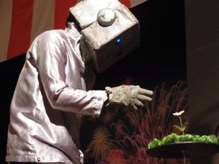 奥からロボットが登場。