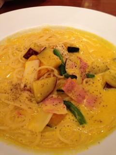 クリームソースが、かぼちゃのポタージュみたいな感じなので