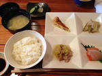 白菜と豚肉の煮びたし、鯛とサーモンのおつくり。