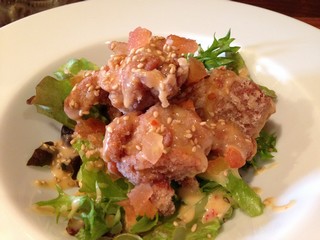 友だちは、豚しゃぶカツ。私は鶏のから揚げにしました。