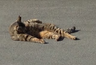 オッサンみたいにくつろいでる、猫ちゃんを見つけた(笑)