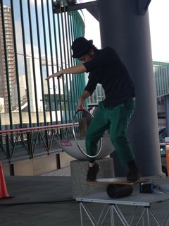 ローラーバランスしながらヨーヨーして、輪をくぐるという技も。