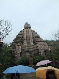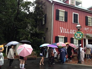インディージョーンズのあとお隣で雨の中、カッパきて傘もさして並び