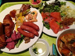 ローストビーフだの、ポークステーキだの、スモークサーモンだの、マグロのたたたきだの・・