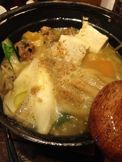 カニ汁を+380円で地鶏スープ小なべにしてもらえます。
