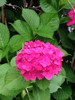 濃いピンクのアジサイ発見。