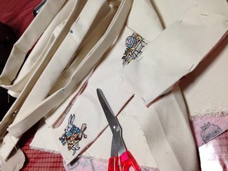 昨日できた刺繍をつかってあるものをつくっていきます。