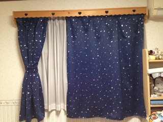 右がの写真は、カーテンと背景の暗い窓の色がカブっててよく見えてないですね。
