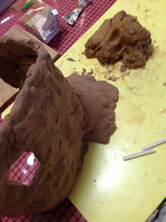 木粉ネンドに茶色と黄土色と黒少々の絵の具を直接入れて