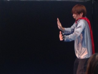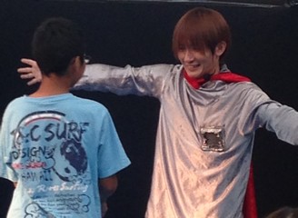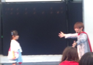 最後、お客さんにたすけてもらって怪獣をやっつけるとき