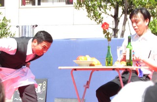 鳥を追いつつ、お客様を迎え、お料理を出す
