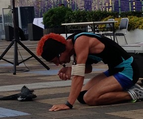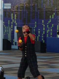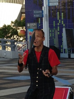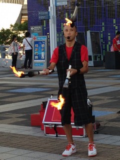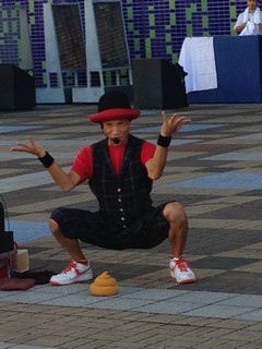 いつもの大道芸を4カ所でやってる・・ってイメージ。