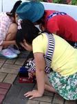 子どもたちがDSしてる間に、母たちは大道芸がみれるからです