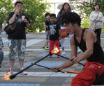 手に火をつけて、反対側に点火するという、信じられない技!!