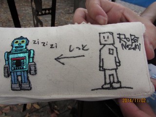 この間作ったソーイングセットにサインしてもらった