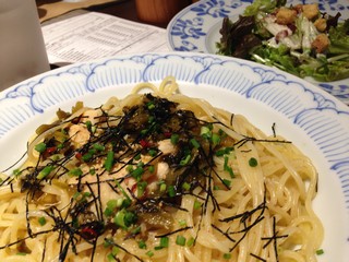 高菜と鶏肉のピリ辛パスタ&サラダ
