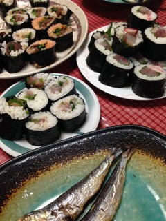 休みだから巻きずしもちょっと凝ったのをつくろうかとも思ったけど