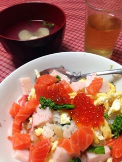 ご飯にちらしずしの素いれてまぜまぜ~~。