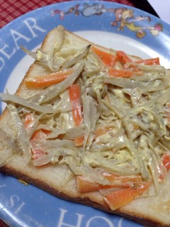 食パン(10枚切り)に、ごぼうサラダ(自家製)乗っけて