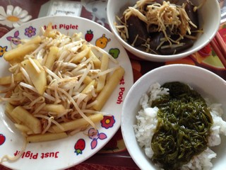 ジャガイモとモヤシのガーリック醤油炒め。