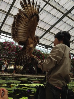 フクロウやミミズクの猛禽類がガラスごしになっているゾーン。