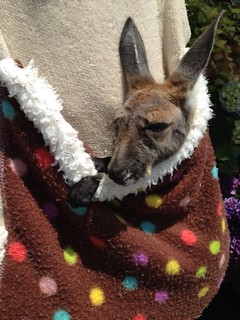 お姉さんの持ってるポシェットにカンガルーの赤ちゃん!