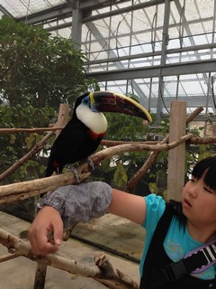 オニオオハシを腕に乗せることができます。