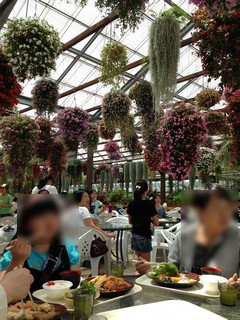 このお花の下で食べるのはなかなか。