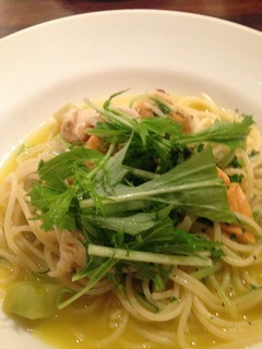 水菜とホタテのオリーブオイルパスタをいただきました。