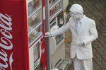 階段を下りて自販機で何やら買う。