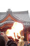 始めて見た松明でわぁわぁ遊んでるようにも見える。