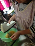 ボウルについた生クリームを一生懸命なめてるんだもん~。