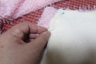 はじっこを折り、待ち針でとめつつ