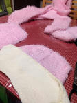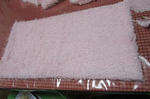 ピンクの布に合わせてみて、だいたいで切っていく。