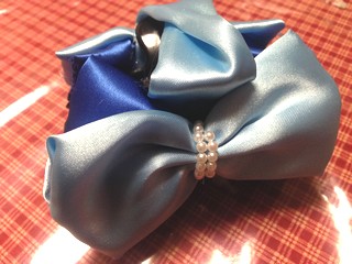 青いヘアークリップも作って・・。