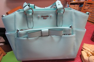 真ん中のリボンのところは小さなポーチになってて、中は花柄?で取り外して使えて便利。