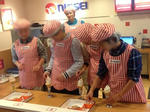 入場前に髪の毛を入れるネットと帽子、エプロンを渡されます。
