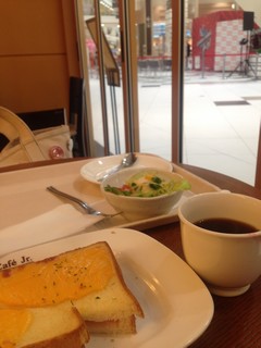 入った入口のまんまえが会場だったので、もうその横のカフェに入って朝ごはんしちゃう