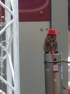 そしたらおじさん、舞台横のポールに猫を乗せる。