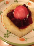 もちもちにアイスのつめたい甘さとベリーの酸っぱさがめっちゃおいしい~。