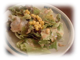 セットメニューは、サラダと、パスタと、ガーリックトーストでした。