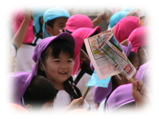 予行なので、旗は割り箸やら棒切れやらに広告をつけたものです