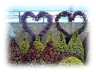 ハートのリースみたいなものに、菊を植えつけている作品。