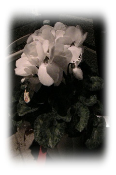 「ホンマは、スイート10ダイヤとかなんやろうけどな」って白いシクラメンの鉢植えをくれました