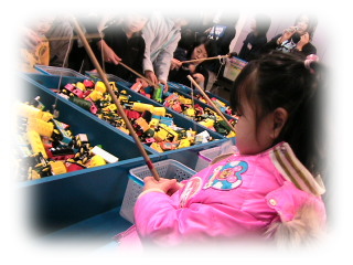 本日一番たくさん釣った子には、新幹線のセットをもらえるらしいが、