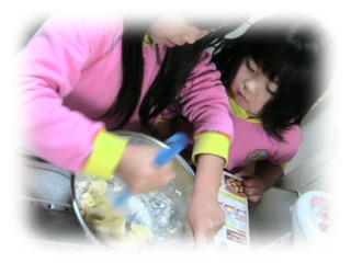 私がやったのは、材料を入れて、最後にこねたくらいかな。