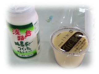 飲むヨーグルトと焼きプリンと淡路牛乳の試食があります。