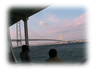 って船で明石まで行き、帰路につきました。フェリーでは明石大橋の下をくぐるんですよ。